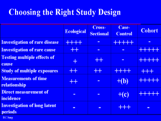 what we would like to study. For example, cohort studies are good for studying many types of problems and issues, but they are not the design for choice for studying rare diseases .