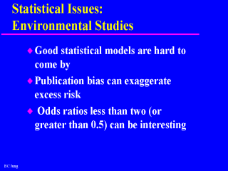 component. He suggests using sensitivity analyses to address this. Other problems to watch out for is selection bias and measurement error. Publication bias has been found to reduce excess risk from 24% to 15%, thereby exaggerating risk. G. van Belle makes a case for developing a public health definition for “effect size.” For example, low levels of air pollution have small effects, but the number of people at risk is hugh. In essence, the overall effect can be large. Additionally, studies of small effects require large sample sizes, which can be costly. |