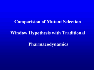 of this lecture? One of the questions frequently asked is how the selection window hypothesis relates to traditional PK/PD ideas. The short answer is that the selection window is a type of in vitro pharmacodynamics that is directed at predicting the propensity of particular bacterial-compound combinations for enrichment of mutants. |