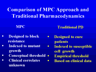 The important differences between the mutant prevention concentration and standard pharmacodynamics are summarized.
