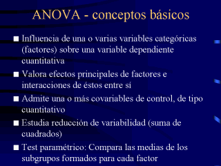 El resultado final del test ANOVA, en caso de resultar singnificativo, solo establece que al menos un subgrupo del factor considerado es distinto de los demás, sin especificar cual es ese subgrupo concreto. |