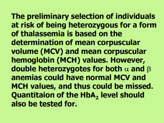 a gene subjects. High pressure liquid chromotography (HPLC) and hemoglobin gel electrophor-esis can identify the sickle cell trait. Its phenotype could be modified by coinherited a -thalessia, leading to lower HbS levels. |