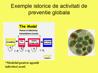 Eradicarea variolei este exemplul cel mai cunoscut al realizarilor OMS. Intr-adevar, beneficiile rezultate in urma eradicarii variolei pentru sanatatea publica sunt impresionante. In 1967, cand OMS a inceput eforturile internationale de eradicare, s-a estimat ca variola afecta pana la 15 milioane de oameni anual, din care aproape 2 milioane mureau, iar mai multe milioane ramaneau desfigurati sau uneori orbi. Printr-o cooperare internationala extraordinara, OMS a fost capabila sa anunte in 1980 ca boala a fost eradicata. Daca nu s-a fi eradicat variola, ar mai fi existat alte 350 de milioane de noi victime in ultimii 20 de ani -- aproximativ cat populatia SUA si a Mexicului luate la un loc -- si un numar estimat de 40 de milioane de morti -- un numar egal cu intreaga populatie a Spaniei si a Africii de Sud. (OMS http://www.who.int/archives/who50/en/smallpox.htm) Imagini luate din lectiile Modelarea raspunsului potential la variola de Martin Meltzer, CDC, USA http://www.inta.cl/supercourse/lecture/cdc0111/003.htm si Amenintarile microbiene asupra sanatatii in SUA http://www.pitt.edu/~super1/lecture/lec6991/index.htm de Joshua Lederberg |