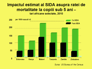 In ultimele 2 decenii preventia epidemiei de HIV/SIDA a devenit o reala provocare pentru domeniul sanatatii publice. Din moment ce nu exista un tratament eficient pentru aceasta boala, iar tratamentele actuale nu sunt accesibile tuturor, prevenirea bolii este cea mai buna metoda de evitare a unei morbiditati si mortalitati excesive datorate SIDA. Tarile care au ajuns la o mortalitate infantila mica, <50/1000 precum Zimbabwe si Botswana datorita serviciilor de ingrijire antenatala, rehidratarii orale, apei potabile si programelor de imunizare inregistreaza impactul cel mai mare cu o crestere de 4-7 ori a mortalitatii la copii sub 5 ani; Alte state cu o mortalitate infantila mai mare datorita altor cauze isi dubleaza aproape mortalitatea la copiii sub 5 ani din cauza SIDA. Autorul diapozitivului: Marc Bulterys, MD, PhD |