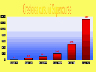 Am avut succes in realizarea unor cursuri de calitate. In total sunt disponibile peste 1300 de lectii. Supercourse are actualmente aproape 10.000 de membrii din 150 de tari ale lumii. Trimiteti un e-mail la cei care se ocupa de Supercourse la super1@pitt.edu daca doriti sa obtineti un CD gratuit cu 1038 de lectii despre preventie si sanatate publica. |