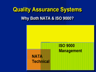17025 (NATA) and ISO 9000 ? The ISO standards alone could provide us with an effective quality management system to manage and control most of our processes. NATA requirements (ISO 17025) would assure the validity of our laboratory technical processes, such as our reference testing. Both these models would provide an effective quality system, ie a system which describes the organisational structure, responsibilities, processes, procedures and resources for implementing quality management. |