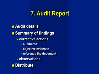 The audit report must include: The audit report should be distributed to the auditee and the Quality Manager. The Quality Manager logs the audit report into the Audit log and allocates a unique audit report number. |