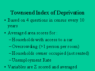 deprivation is an area based score used in the United Kingdom. It is based on 4 pieces of