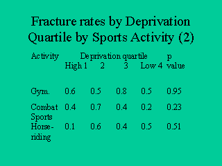 This slide shows the fracture rate by deprivation quartile for fractures resulting from the remaining sports.