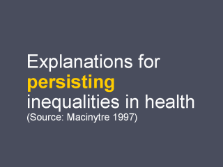 explanations for (persistent) inequalities in health. These four explanations can be divided into two main processes: Selection and causation.