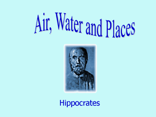 air pollution was seen as a potential source of health problems. The best-known description of the medical links between health and air quality ar found in the Hippocratic Corpus, wich contains a well-known book on Air, Water and Places. It tells of the importance of climate, the properties of air that come with various winds and the quality of air and water.