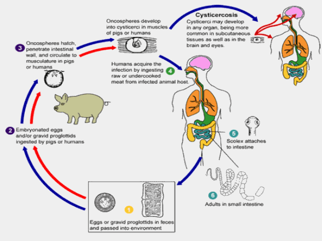 Common cysticercosis with frequent infections from eating undercooked pork