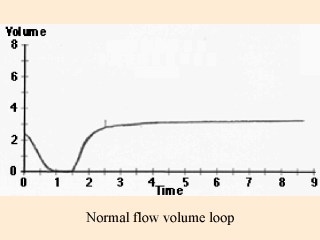 volume loop gives the opportunity of assessing this information as well. The normal volume time curve has a rapid upslope and approaches a