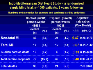 Adjusted for baseline age, gender, BMI, cholesterol and blood pressure. Source: Singh RB et al. Lancet 2002; 360: 1455–1461 |