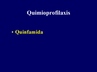| Quinfamida es una droga antiamebiana cuya acción es puramente luminal y su absorción es mínima. Puede administrarse en una dosis un día 300 mg en adultos y 4.3 mg/kg en niños. No es de utilidad en amebiasis invasiva y/o extraintestinal. |