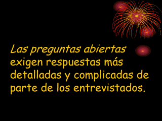 participantes se sientan estimulados a responder exhaustivamente. Ejemplo de preguntas abiertas: ¿ Qué piensan los hombres acerca del empleo de condones ?