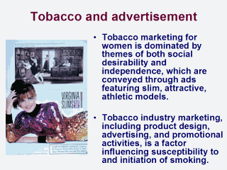 | The dependence of the media on revenues from tobacco advertising oriented to women, coupled with tobacco company sponsorship of women’s fashions and of artistic, athletic, political, and other events, has tended to stifle media coverage of the health consequences of smoking among women and to mute criticism of the tobacco industry by women public figures. |