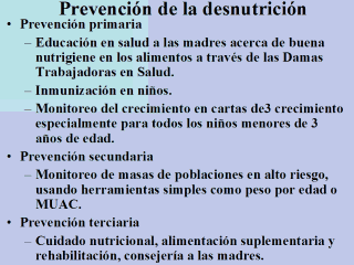 de niños desnutridos deberán ser aconsejadas acerca del cuidado apropiado