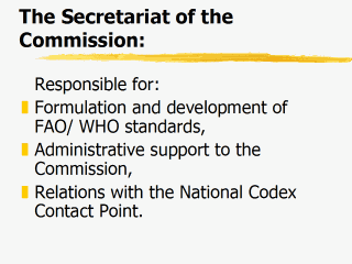 Contact bodies/institutions (Codex contact points). The Secretariat is