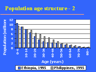 | Most developing countries: constant decrease of the population by age.(Source of data: 1997 Demographic Yearbook. New York: United Nations; 1999.) |