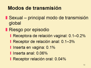 riesgo para sexual transmisión de VIH. Sexo anal es algo más riesgoso que