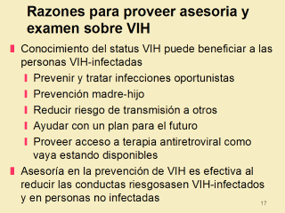 sola. En un análisis separado de este estudio, asesoría y examen de VIH fue