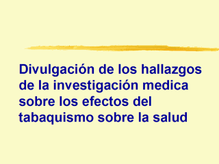 de los efectos peligrosos del tabaco. En 1950, en los EE UU, solo el 45 % de los adultos identificaba el habito de fumar como causa de cancer de pulmon. En 1990 lo hacia el 95 %. A lo largo de un periodo similar, la proporcion de la poblacion fumadora de ese pais descendio desde mas del 40 % a alrededor del 25 %. Los estudios efectuados en distintos paises de ingreso alto llegan a la conclusion que la divulgacion de la informacion sobre los efectos sanitarios del tabaco es la responsable de la disminucion constante de su consumo. |