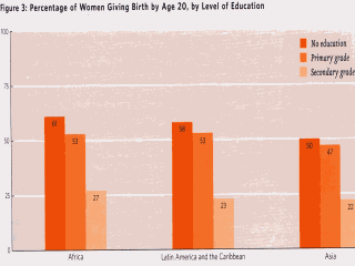 efectivos instrumentos en reducir la fertilidad. Si una niña ha completado diez años en la escuela, su fertilidad disminuye a la mitad de aquellas que han estado en la escuela sólo en la educación primaria como se vislumbra a través de datos copilados por Naciones Unidas. |