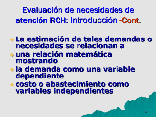 | En general, el concepto de evaluación de necesidades semeja una estimación de demandas para ciertos bienes o servicios. En términos económicos, demandas de bienes o servicios están unidos con el costo o abastecimiento. Estimación de la demanda en este sentido económico es una variable dependiente y el precio es una variable indpendiente o explicativa. |