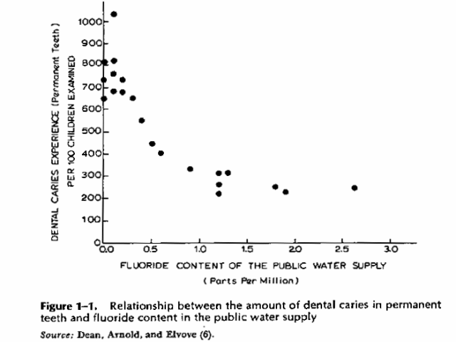 teeth and fluoride content in the public water supply= Figura 1.1 Relación