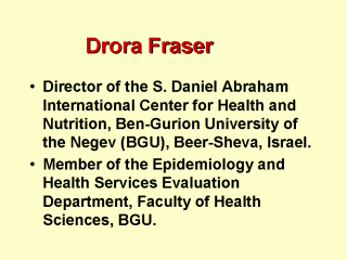 I am an Associate Professor of Epidemiology and the Director of the S. Daniel Abraham International Center for Health and Nutrition at Ben-Gurion University.