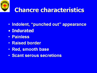 infectious syphilis, primary or secondary, without gloves!). Chancres tend