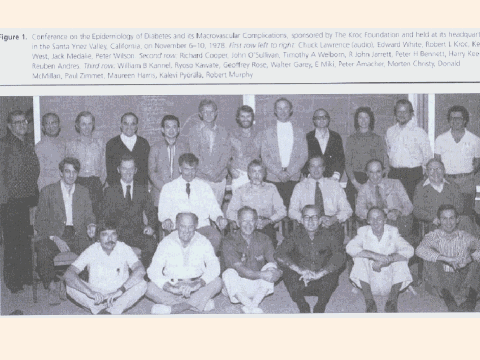 Another very important milestone in diabetes epidemiology was a conference held in 1978 at the Kroc Foundation in California. It was the first major meeting on the epidemiology of diabetes. The proceedings from this conference were published in Diabetes Care in the 1979 (4). The publication holds a remarkable set of papers including the initial findings of the first ever major international diabetes epidemiology collaboration, the WHO Multinational Study on Vascular Disease (5), spearheaded by Harry Keen, John Jarrett, Kelly West and Peter Bennett. It also contains extensive debate on appropriate methodology and the foundations for the 1980 WHO Expert Committee report on Diabetes.