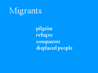 | There are several terms, describing the migrants, people, who moving to new environment, including such words as pilgrim,refugee,conquerors and displaced people. 70% of people at US are migrants now, so US a nation of migrants. We, at US, had a wonderful possibility to conduct a migrant studies and understand how environmental factors influenced to diseases, because of tremendous migration process at 20th Centure. |
