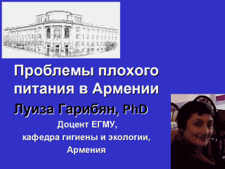 Луиза Гарибян - выпускница факультета «Гигиена и санитария» Ереванского государственного медицинского университета. Диссертация была защищена на тему загрязнения воздуха.