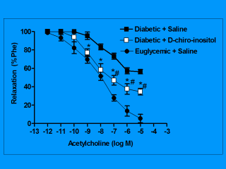 Data are mean ± SEM of 6 experiments. * p<0.05 (diabetic + D-chiro-inositol
