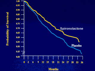 Survival in High-risk Heart Failure Patients Pitt B. et al. The effect of spironolactone on morbidity and mortality in patients with severe heart failure. N Engl J Med.199; 341:709-717 |