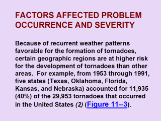 tornadoes. For example, late afternoon is the time of day when tornadoes are