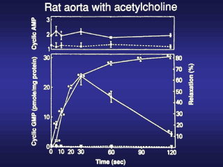| After a brief visit to our new laboratory by the late Michael Peach in 1982 and his queries about our interests in EDRF, we then proceeded to demonstrate independently that EDRF did, indeed, increase cyclic GMP synthesis in the smooth muscle compartment of rat aorta segments. |