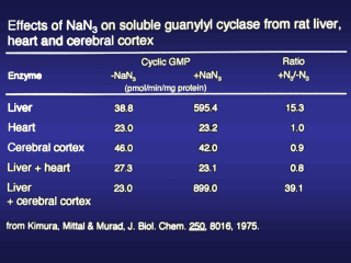 without azide effects on guanylyl cyclase. Mixing extracts of liver with