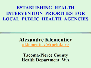 The purpose of the method is to give a logical and empirical basis for public health decision makers in setting priorities for public health campaigns and interventions. The method provides a ranking of candidate health programs based on the estimated effect of each program on the morbidity and mortality. |