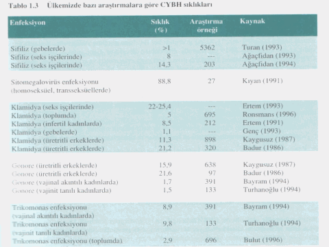 Türkiyede bazı araştırmalara göre cinsel yolla bulaşan hastalıkların