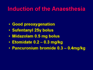 injected immediately. Anaesthetist must remind himself that drugs for induction must be diluted, effect will not be rapid wait for response, good preoxygenation must be provided before any drug be injected. |