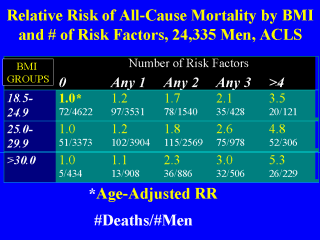 Increasing numbers of risk factors are associated with increased risk of death at every obesity stratum.
