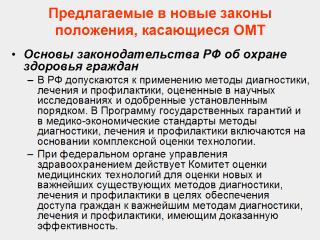 - Медико-экономические стандарты включают применение методов диагностики, лечения и профилактики, оцененных в научных исследованиях и одобренных установленным порядком. - При включении в Программу государственных гарантий (медико-экономические стандарты) новых технологий (вмешательств) их комплексная оценка проводится Комитетом оценки медицинских технологий.