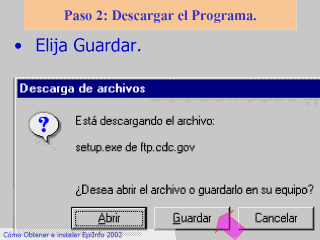 diálogo le informa que está descargando el archivo Setup.exe. Elija la opción GUARDAR para guardarlo en su ordenador |