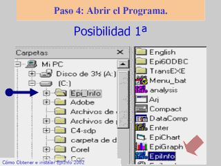 usarlo. Bien, tiene dos opciones. Veamos la primera. Diríjase con su explorador a la carpeta Epi_Info y busque el icono Epiinfo. Pulse sobre él y aparecerá en programa. |
