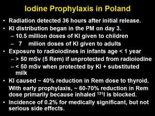 Nauman J, Wolff J. Iodide prophylaxis in Poland after the Chernobyl reactor accident: Benefits and risks. Am J Med 1993;94(5):524-532.