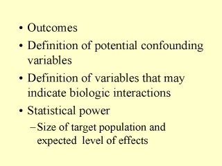 registries, vitals statistics, birth outcomes from birth certificates) is accurate. Statistical power is likely a very important issues as many investigations occur where populations are sparse. |