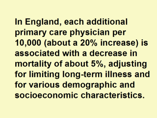 | Source: Gulliford MC. Availability of primary care doctors and population health in England: is there an association? J Public Health Med 2002; 24(4):252-254. |